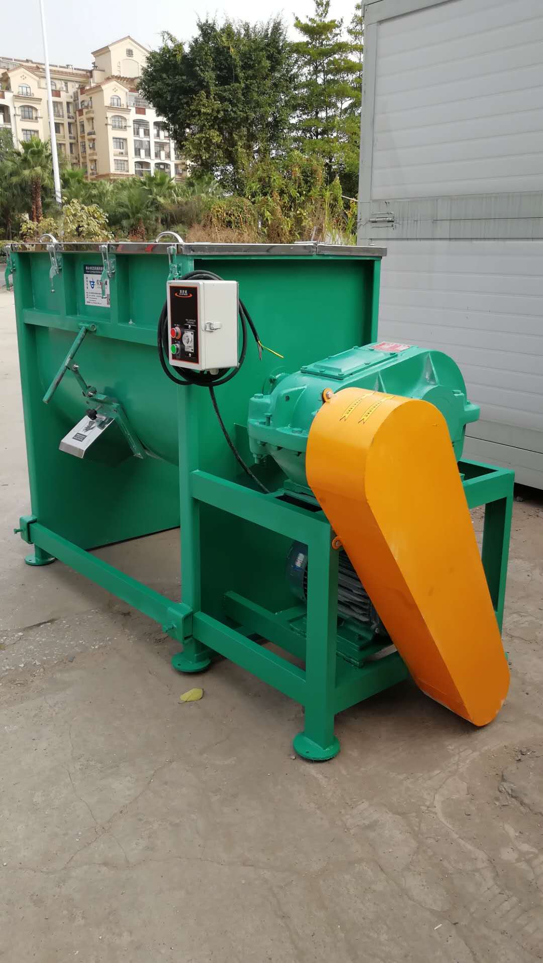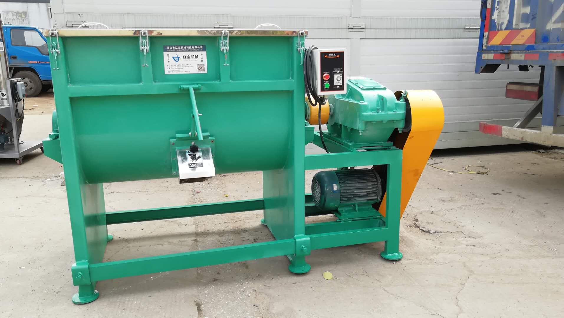 險位置打開主機立即斷電。按鈕控制、安全可靠、使用壽命長。該機特點:耗電少,飼料臥式攪拌機,效率高,且自動化程序優(yōu)良,大大減輕勞動強度。